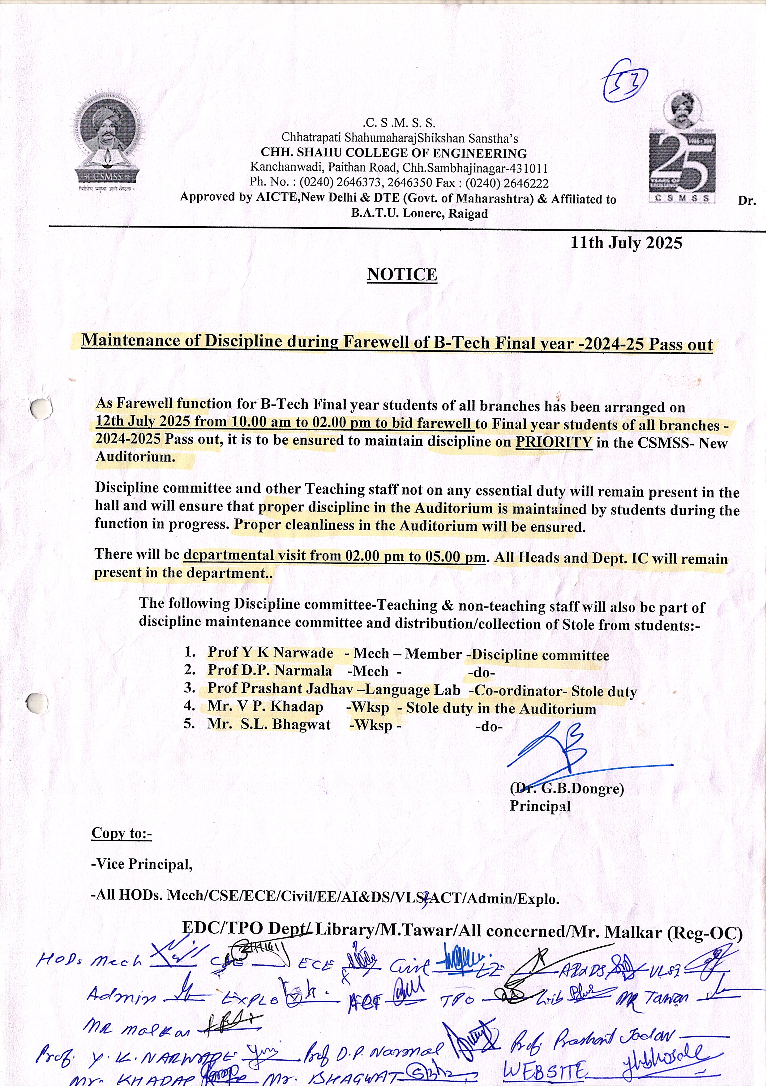 14. Maintenance of Discipline During Farewell of B.Tech Final Year Pass Out.